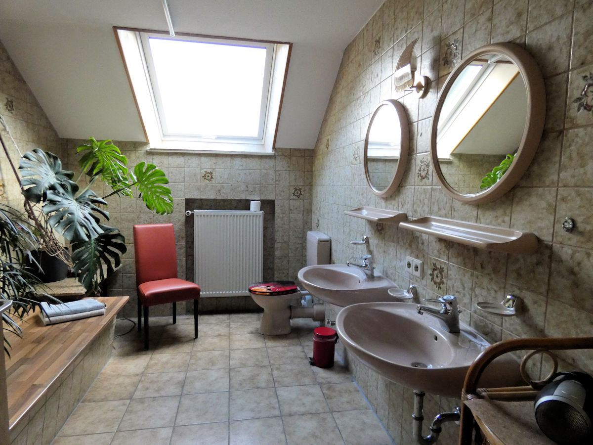 Das großzügige Bad, Dusche, Doppelwaschbecken bietet sehr viel Bewegungsfreiheit. Ein großer, komplett überdachter Balkon mit Sitzgarnitur vollendet die Ferienwohnung. Autoabstellplätze direkt am Haus. Fahrräder können auf abgeschlossen Grundstück abgestellt werden.